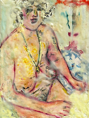 Ich arbeite mit Ölpastell, Enkaustik und Latex. Die Materialien tragen Spuren, altern, lösen sich ab. Latex verändert sich mit der Zeit – wie Haut, wie Erinnerung. Die Oberflächen erzählen vom Körper, aber auch von Vergänglichkeit.